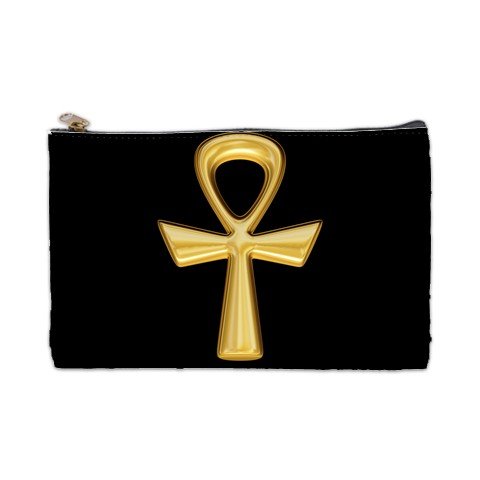 Buy Cosmetic Bag (Makeup Bag) Medium (2-Sided) of Egyptian Gold Ankh with Black Background. This is a great gift idea for the ladies in your life. These cosmetic bags are designed to fit essential make up gear, giving it maximum points for practicality when carrying around your lip gloss, bronzer, nail polish, etc. Made from durable 600d polyester fabric. Zippered closure for easy access . Zippered hidden interior compartment. Double sided printing. Approx. Dimensions: 8" width x 5" height.