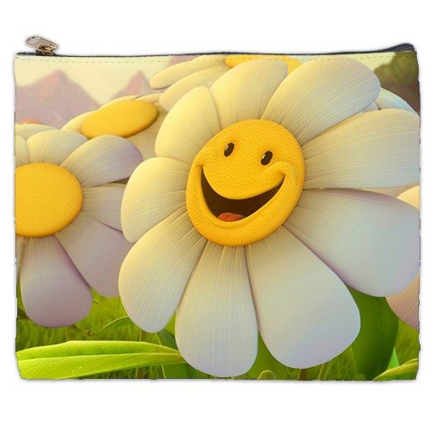 Cosmetic Bag (Makeup Bag) XL (2-Sided) of Smiley Face on Daisy Flower (Yellow Smiley Face) Features