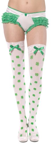 Buy Thigh High Shamrock Stockings - Accessories & Makeup. Package includes a pair of white thigh highs with green shamrock accents and lace top w/ bow. Available in One-Size Fits Most Adults.